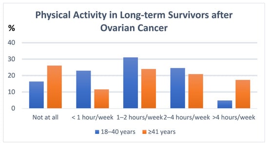 Background/Objectives: Ovarian cancer is typically diagnosed in postmenopausal women, so there are limited data available for young adult cancer survivors (YACS). The aim was to assess the patient perspective of YACS. Methods: In this international and multicenter cross-sectional survey study, patient history, long-term side effects, and patient perspective were assessed. Long-term survival was defined as survival of at least five years after cancer diagnosis. Two groups were defined: (1) 18–40 years and (2) ≥41 years. Results: Altogether, 1833 long-term survivors (LTS) have been recruited, with 1771 patients ≥41 years and 62 patients 18–40 years at recruitment. FIGO stages were similar; among the patients, 99.0% had received primary surgery followed by chemotherapy in 90.3%. Almost 50% still experienced long-term side effects. Patients ≤ 40 years reported more frequently not only gastrointestinal symptoms such as nausea/vomiting (44.4%, p = 0.01), bloating (59.3%, p = 0.038), and constipation (60%, p = 0.015) but also depression (31.4%, p = 0.02), lymphedema (45.3%, p = 0.026), and concentration difficulties (30.6%, p = 0.002). Distress levels were also higher in YACS, especially concerning insurance/finances, work/school, child care, worries, and sadness. Polyneuropathy and secondary cancer were the only side effects that were more frequent in the elder cohort (polyneuropathy: 20.3% vs. 4.3%, p = 0.002, and secondary cancer: 8.4% vs. 0%, p = 0.014). YACS were more physically active (p = 0.003) and interested in studies about long-term cancer survivorship in 87.2%. Conclusions: Long-term side effects are equally common in YACS after ovarian cancer, but with a focus on practical problems, mental health, gastrointestinal problems, and sexuality. This knowledge should be incorporated into follow-up care of ovarian cancer patients in order to improve quality of life.