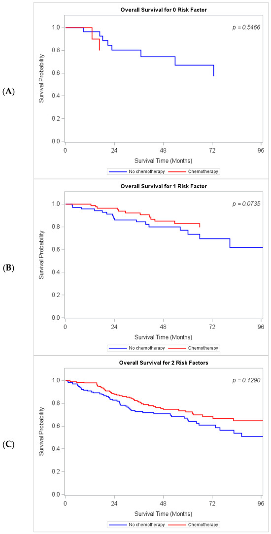 Background: National guidelines recommend adjuvant chemotherapy (AC) following resection for all stages of pancreatic cancer (PDAC), but the benefit of AC in Stage IA disease remains unclear. The objective of this study was to identify a subgroup of patients with Stage IA PDAC that could possibly forego AC. Study Design: The National Cancer Database (NCDB) was queried to identify all patients with Stage IA PDAC diagnosed from 2010 to 2021. Patients who received AC were compared to those who did not. Multivariable analysis was conducted to identify risk factors associated with overall survival (OS). Results: There were 1421 patients eligible for analysis. On multivariable analysis, we found nine factors associated with worse overall OS: advanced age (p = 0.0414), lower median income (p = 0.0148), Medicare (p = 0.0180), higher-grade tumor histology (p = 0.0182), LVI (p = 0.0028), positive surgical margins (p = 0.0027), examination of fewer than 12 lymph nodes (p = 0.0395), and a length of stay greater than 7 days (p < 0.0001). OS was negatively correlated with an increased number of risk factors. Improved OS was observed following AC in patients with three (∆OS = +54 months; p = 0.0016) or four or more risk factors (∆OS = +11.4 months; p = 0.0250). However, patients with fewer than three risk factors did not experience improvement in OS following AC. Conclusions: AC does not appear to benefit Stage IA PDAC patients with fewer than three risk factors indicating that it may be safe to omit AC in these individuals.