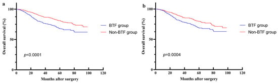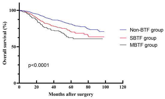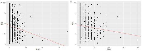 Background/Objectives: Perioperative blood transfusion (BTF) remains controversial regarding its impact on oncological outcomes in colorectal cancer (CRC). This study aimed to evaluate the association between BTF, transfusion volume, and long-term prognosis in CRC patients undergoing radical resection. Methods: We conducted a retrospective cohort