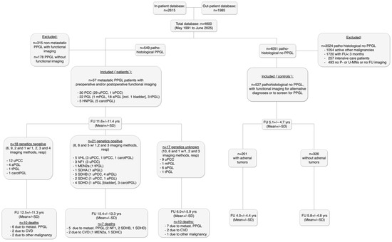 Given the low annual incidence of PPGL (0.04-0.66 per 100.000), centers have to serve a population of 1.5 million to diagnose, treat, and follow 10 new patients per year at best. Available retrospective studies from single centers often suffer from a small number and/or incomplete characterization of patients or insufficient follow-up; multicenter studies follow non-uniform protocols as to the selection, clinical, biochemical, radiological, and genetic characterization or follow-up of patients.
