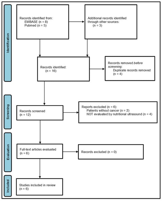 Background: Sarcopenia assessment provides significant prognostic information that outperforms body mass index and will help to guide interventions to optimize survival outcomes in cancer patients. Computed tomography (CT) is an opportunistic tool used for the assessment of low muscle mass criteria of sarcopenia in cancer patients, while nutritional ultrasound (NU) cutoff points for sarcopenia have been recently proposed. The objective of the present review is to evaluate if NU has a comparable accuracy as CT for the assessment of sarcopenia in cancer patients and could be useful in clinical setting. Methods: Systematic review was registered in Open Science Framework. PubMed and Scopus databases were searched in May and updated in August 2025. All published studies in which patients were evaluated using only one of the previously mentioned modalities, or those involving subjects with non–cancer-related pathologies, were excluded. Two reviewers independently evaluated the risk of bias of selected studies with the National Institutes of Health (NIH) Quality Assessment Tools, and results are presented following the PRISMA 2020 model for systematic reviews. Results: Six studies comprising a total of 1011 patients (57.27% male) were evaluated. Accuracy, variability, and agreement between NU and CT are presented. Conclusions: Main limitations of the evidence include the heterogeneity among studies and their risk of bias. Nevertheless, NU can be a useful tool for sarcopenia diagnosis and can provide a closer and a more flexible follow-up in cancer patients than CT.