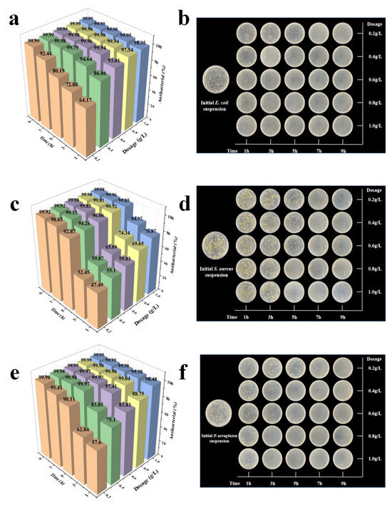 In this work, a novel polyvinyl alcohol/starch (PVA/St)-based composite film was fabricated by integrating citric acid (CA) and silver-loaded biochar (C-Ag) nanofillers to enhance antibacterial functionality. Sorghum straw-derived biochar was loaded with silver nanoparticles (AgNPs) through a green synthesis route using Peucedanum praeruptorum Dunn extract. The successful crosslinking by CA and the uniform incorporation of AgNPs were confirmed by FTIR, XRD, and SEM. Notably, the optimized composite film containing 1.5 g/L C-Ag exhibited strong broad-spectrum antibacterial activity, with inhibition zones of 28 mm against E. coli, 29 mm against S. aureus, and 26 mm against P. aeruginosa, respectively. The high efficacy is attributed to the synergistic effect between the sustained release of Ag+ and the CA-induced acidic microenvironment. This work provides a green and high-performance antibacterial material to address the potential microbe contamination.