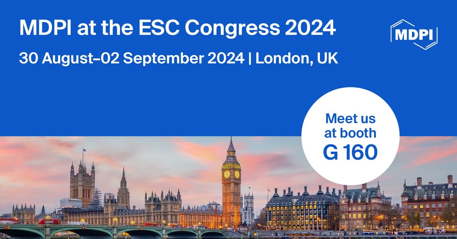 MDPI will attend the ESC Congress 2024, held in London, UK, from 30 August to 2 September 2024, at booth #G 160. We invite researchers from different backgrounds to visit and share their latest ideas with us.