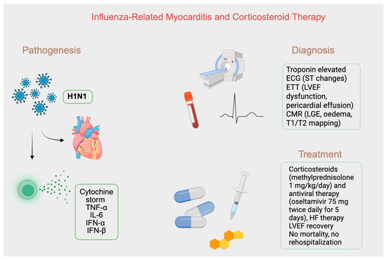 Background: Myocarditis is a potentially life-threatening inflammation of the myocardium that can be triggered by viral infections, including influenza. While corticosteroids have historically been used with caution in viral myocarditis due to concerns over impaired viral clearance, recent insights—particularly those emerging from