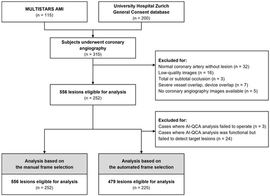 Artificial intelligence-based quantitative coronary angiography (AI-QCA) has recently emerged as a promising tool for real-time lesion assessment in cardiology. We aimed to validate a novel AI-QCA software, trained on a Korean dataset, in a European cohort. We analyzed 556 lesions from 252 subjects