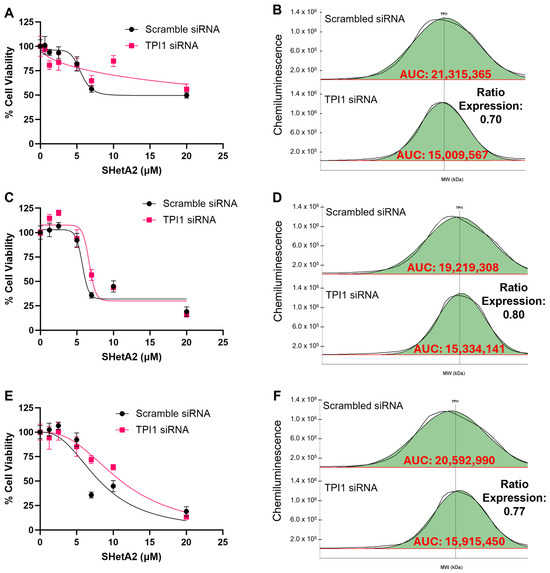 Background: Our objective was to identify and validate proteins that predict which patients with ovarian cancer will respond to SHetA2, an investigational drug in a phase 1 trial for patients with advanced or recurrent solid tumors (clinicaltrials.gov: NCT04928508). Methods: Cells were cultured from ascites from nine consented patients under an institutional review board-approved protocol. SHetA2 or olaparib sensitivities were determined using metabolic viability assays in ascites-derived cultures or ovarian cancer cell lines. Expression of four SHetA2 target proteins and sixteen proteins previously identified in an ovarian cancer mouse model were measured using microcapillary electrophoresis. Triosephosphate isomerase 1 (TPI1) was modulated by siRNA or lentivirus vector-mediated overexpression. Metabolites were measured using mass spectrometry. Results: TPI1 was elevated in SHetA2-sensitive compared to SHetA2-resistant ascites-derived cultures (two-way ANOVA q-value = 0.0003). The majority of (5/9) cultures were olaparib-resistant and SHetA2-sensitive. TPI1 was higher in olaparib-resistant cultures (two-way ANOVA q-value = 0.0003). Reduction in or overexpression of TPI1 reduced or increased SHetA2 potency, respectively, in two ovarian cancer cell lines (t-tests; p < 0.05). SHetA2 reduced the metabolites in glycolysis downstream of TPI1, the tricarboxylic acid cycle and oxidative pentose phosphate pathway. Conclusions: TPI1 is a candidate functional biomarker of SHetA2 sensitivity in ovarian cancer.