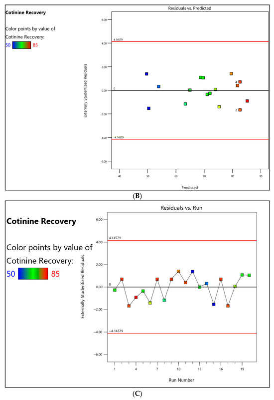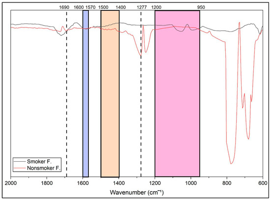 The increasing use of electronic cigarettes (e-cigarettes) highlights the need for accessible and reliable biomarkers to assess nicotine exposure. Fingernails represent a non-invasive and stable keratin matrix capable of capturing the long-term incorporation of xenobiotics such as cotinine, the primary metabolite of nicotine. This study aimed to optimise cotinine extraction from fingernails using Response Surface Methodology (RSM) with a central composite design prior to quantification by attenuated total reflectance Fourier transform infrared (ATR-FTIR) spectroscopy. Three extraction variables were evaluated: NaOH concentration, extraction temperature, and extraction time. Numerical optimisation identified the optimal conditions as 3.74 M NaOH, 50 °C, and 40 min, yielding a predicted recovery of 84.06% with a high desirability value of 0.973. The calibration curve demonstrated excellent linearity (R2 = 0.9998), with a limit of detection of 14.5 µg kg−1 and a limit of quantification of 43.8 µg kg−1. The RSM model exhibited strong predictive performance, with an R2 of 0.9990, an adjusted R2 of 0.9982, and a predicted R2 of 0.9958, supported by a non-significant lack of fit and robust residual diagnostics. Application of the optimised protocol to real fingernail samples successfully differentiated e-cigarette smokers from non-smokers based on characteristic cotinine-associated FTIR spectral features and quantitative measurements, demonstrating the practical utility of the proposed method. Overall, this study establishes a rapid, chromatography-free, and cost-effective analytical approach for monitoring long-term nicotine exposure using keratin-based matrices.