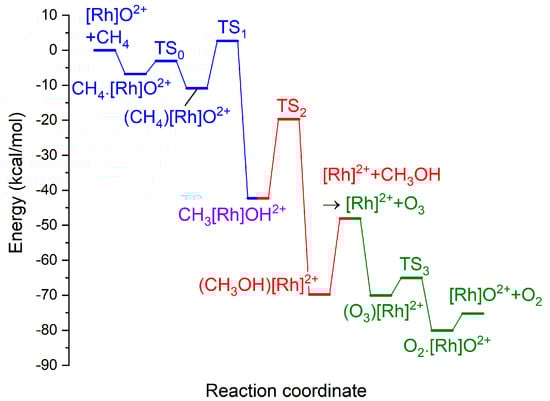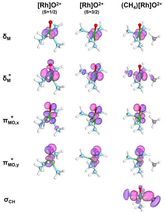 Density functional theory calculations are performed to examine the reactivity of the coordinatively unsaturated (NH3)4RhO2+, (NH3)4CoO2+, and (NH3)4FeO+ species with methane and methanol. The ground low-spin state of rhodium oxide provides ideal energetics for the efficient and selective conversion of methane to methanol. The small activation energy barriers for all three steps (H3C-H activation, CH3-OH recombination, oxygen reload) promise fast conversion, while the larger activation barrier for the C-H activation of methanol provides the means to kinetically hinder further oxidation to the thermodynamically more favorable formaldehyde. The key finding was that rhodium prefers the 2 + 2 (as opposed to radical) activation mechanism of methane. To maintain the “ideal” electronic structure observed for (NH3)4RhO2+, we first replaced rhodium with its first-row lower cost counterpart cobalt. The cobalt complex favors a quartet state, which prefers a radical mechanism leading to the formation of methyl radical. This undesired effect vanishes, switching from Co4+ to Fe3+. Possible explanations for the observed trends are provided in terms of electronic structure features of the three metals. The production of methanol from methane has been a topic of intense interest over the past decades and we believe that this work offers new insights for tackling this challenging problem.