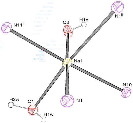 The reaction of 4,4′-bipyridine (C10H8N2) with the alkali metal pentacyanocyclopentadienides [Na{C5(CN)5}(MeOH)] and [KC5(CN)5] gives the coordination polymers [Na{C5(CN)5}(EtOH)(H2O)(C10H8N2)] (1) and [K{C5(CN)5}(H2O)2] • 2 (C10H8N2) (2) after recrystallization from EtOH. Both compounds show octahedral coordination around the metal ion with a NaN4O2 and KN2O4 environment. The [C5(CN)5] acts as a 1,1-bridging ligand in 1 and a 1,2-bridging ligand in 2. The 4,4′-bipyridine acts as a N,N′-bridging ligand between dimeric [Na2(EtOH)2(H2O)2(µ-{C5(CN)5}2] units, while it acts only as a guest molecule in the voids between polymeric [K(µ-H2O)4/2{µ-C5(CN)5}2/2]∞ chains. Both compounds employ multiple hydrogen bonds and π stacking to stabilize the crystalline structures.