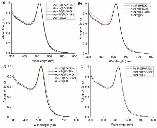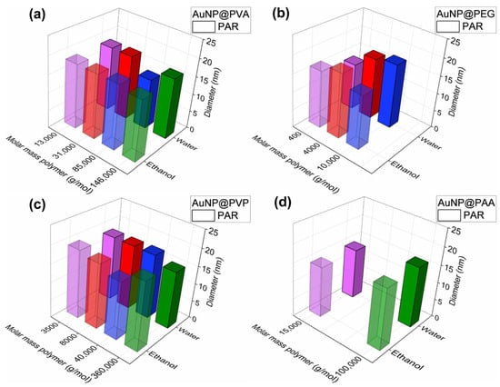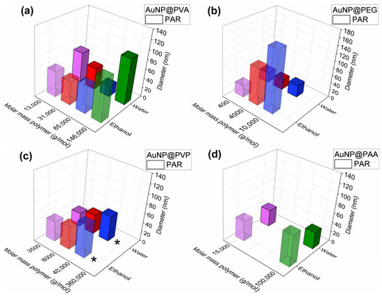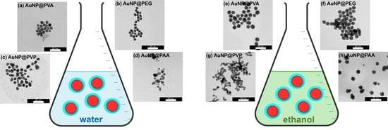 Solvent-Dependent Stabilization of Gold Nanoparticles: A Comparative Study on Polymers and the Influence of Their Molecular Weight in Water and Ethanol