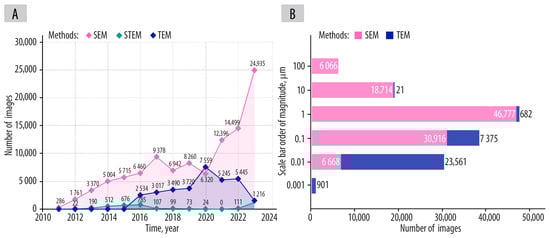 The goal of this study is to estimate the amount of lost data in electron microscopy and to analyze the extent to which experimentally acquired images are utilized in peer-reviewed scientific publications. Analysis of the number of images taken on electron microscopes at