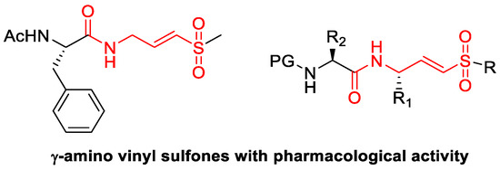 Sulfonyl derivatives are very important compounds as they can be found in sulfones and sulfonamides, two classes of compounds with prominent biological and pharmacological activities. This study explores a copper-catalyzed cascade heterocyclization/sulfonylation reaction for the controlled preparation of sulfonyl oxazinones. Surprisingly, in this work we have isolated a great variety of vinyl sulfones with high selectivity instead of the expected cyclization. These sulfones are obtained by the reaction between N-Boc-allenes and aromatic sodium sulfinates. These results emphasize the reactivity of allenes toward the formation of bis(γ-amino-functionalized vinyl sulfones) in the presence of copper salts under radical conditions.