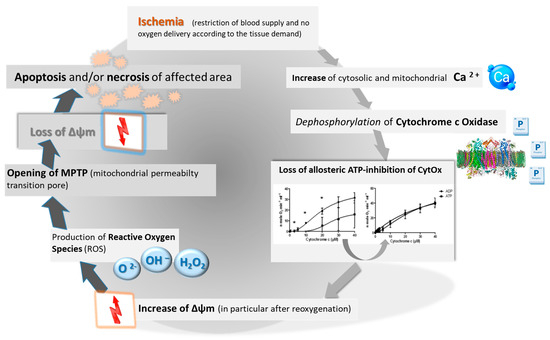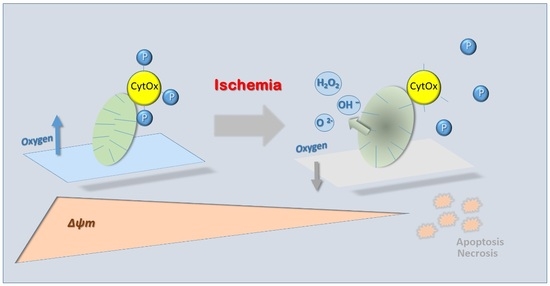 The impairment of biological tissue caused by ischemia is a key area of research in both natural sciences and medical research. The utilization of oxygen in the process of tissue respiration is closely linked to mitochondrial function, i.e., the directed transfer of electrons between the enzyme complexes of the respiratory chain. The Cytochrome c oxidase, complex IV of the ETC, represents the so-called “rate-limiting step.” Kadenbach’s theory has described different activity states of this enzyme, which are crucial for the production of oxygen radicals. This mechanism is an important part of understanding ischemic damage to the heart.
