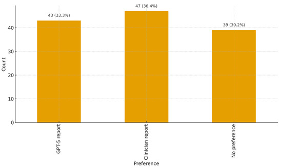 Background/Objectives: Written discharge explanations are crucial for patient understanding and safety in emergency eye care, yet their tone and clarity vary. Large language models (LLMs, artificial intelligence systems trained to generate human-like text) can produce patient-friendly materials, but direct, blinded comparisons with clinician-written texts remain scarce. This study compared patient perceptions of a routine clinician-written discharge text and a GPT-5-generated explanation, where GPT-5 (OpenAI) is a state-of-the-art LLM, based on the same clinical facts in emergency ophthalmology. The primary objective was empathy; secondary outcomes included clarity, detail, usefulness, trust, satisfaction, and intention to follow advice. Methods: We conducted a prospective, single-blind, within-subject study in the Emergency Ophthalmology Unit of the University Hospital Centre Split, Croatia. Adults (n = 129) read two standardized texts (clinician-written vs. GPT-5-generated), presented in identical format and in randomized order under masking. Each participant rated both on Likert scales with 1–5 points. Paired comparisons used Wilcoxon signed-rank tests with effect sizes, and secondary outcomes were adjusted using the Benjamini–Hochberg false discovery rate. Results: Empathy ratings were lower for the GPT-5-generated text than for the clinician-written text (means 3.97 vs. 4.30; mean difference −0.33; 95% CI −0.44 to −0.22; p < 0.001). After correcting for multiple comparisons, no secondary outcome differed significantly between sources. Preferences were evenly split (47.8% preferred GPT-5 among those expressing a preference). Conclusions: In emergency ophthalmology, GPT-5-generated explanations approached clinician-written materials on most perceived attributes but were rated less empathic. A structured, human-in-the-loop workflow—in which LLM-generated drafts are reviewed and tailored by clinicians—appears prudent for safe, patient-centered deployment.