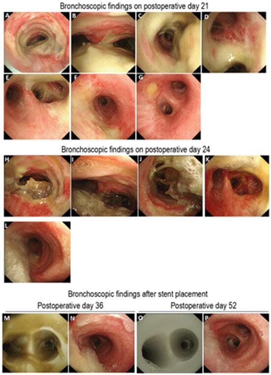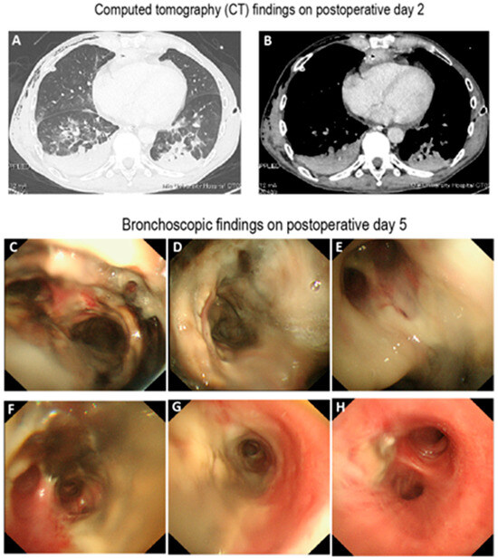 Background: Airway stenting is an alternative therapy for patients with complicated esophagectomy. Case presentation: A 60-year-old man with clinical stage IIIA esophageal cancer underwent neoadjuvant chemotherapy followed by robot-assisted subtotal esophagectomy with cervical esophagogastrostomy and jejunostomy. During surgery, both bronchial arteries were ligated