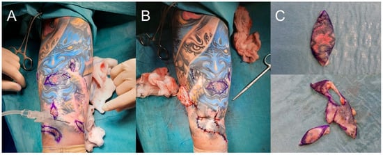 Background: Adverse reactions to tattoo pigments are increasingly recognized, yet severe systemic complications remain rare and poorly characterized. Red tattoo ink, in particular, is associated with delayed hypersensitivity reactions, but widespread manifestations affecting multiple organ systems have not been documented. This case report aims to describe an unusual constellation of erythroderma, alopecia universalis, anhidrosis, and vitiligo triggered by red tattoo ink and to highlight the diagnostic and therapeutic challenges associated with such reactions. Case presentation: This case report describes a 36-year-old Caucasian male who developed erythroderma, alopecia, anhidrosis, and vitiligo as complications of a red ink tattoo, marking a rare and previously unreported case of such extensive reactions. Four months after getting the tattoo, the patient began to develop itchy eczematous changes, which progressed to erythroderma over several months, along with alopecia universalis and anhidrosis. Results: After months of ineffective treatment with glucocorticosteroids, cyclosporine, methotrexate, and acitretin, patch tests confirmed hypersensitivity to possible components of the red tattoo ink, prompting surgical removal of the inflamed tattoo fragments. Unfortunately, aside from resolving the erythroderma, this did not improve the patient’s clinical condition, and he developed vitiligo. Only after the complete removal of the red tattoo ink from the same series that caused the sensitization and the use of immunosuppressive and immunomodulatory drugs, including JAK inhibitors, was hair growth restored and the progression of vitiligo halted, but with no effect on anhidrosis. Conclusions: This case highlights the challenges in managing systemic reactions to tattoo ink and the importance of thorough evaluation and treatment strategies.