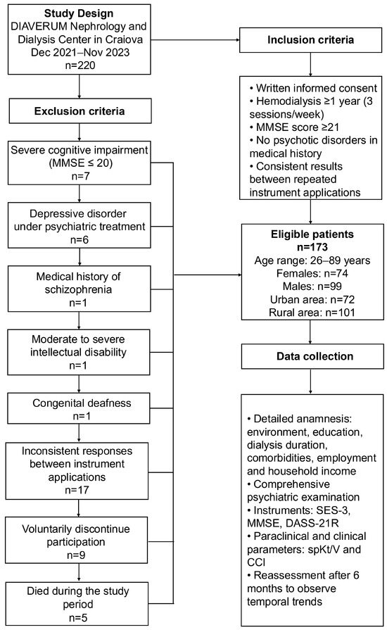 Background/Objectives: Chronic kidney disease (CKD) progresses with the gradual and irreversible loss of renal function. In Romania, given the increasing number of patients undergoing hemodialysis (HD), the prevalence of psychiatric symptoms and disorders in this population has become particularly significant. Although important