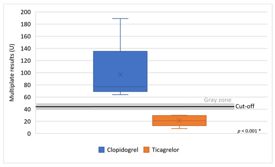 Objectives: The goal of this study is to establish the incidence of high on-treatment platelet reactivity (HTPR) to aspirin and clopidogrel in patients undergoing carotid stenting and to evaluate the efficacy of ticagrelor and ticlopidine in patients with HTPR to clopidogrel. Methods: In a single institutional setting spanning eight years, every consecutive patient who underwent carotid artery stenting was incorporated into a study. Subsequently, a retrospective analysis of their platelet function was executed. Prevalence of high on-treatment reactivity to aspirin, clopidogrel, ticlopidine and ticagrelor was assessed. Platelet function testing was conducted by light transmission aggregometry and Multiplate®. Results: A total of 216 patients were tested for antiplatelet therapy efficacy. The high on-treatment reactivity to clopidogrel was observed in 68 patients (31.4%). No patients with high on-treatment reactivity to ticagrelor or ticlopidine were observed. There was a significant reduction in platelet reactivity with ticagrelor (p < 0.000) and ticlopidine (p < 0.000) in patients with HTPR to clopidogrel. Conclusions: High on-treatment platelet reactivity to clopidogrel is common in patients undergoing carotid artery stenting. Ticagrelor is a viable alternative to overcome HTPR to clopidogrel. These findings suggest that platelet function testing can identify patients who may benefit from tailored antiplatelet therapy in reducing thromboembolic complications after carotid stenting.