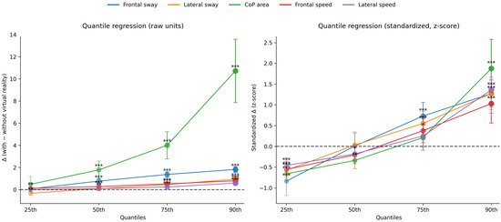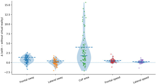 Background: Previous studies have demonstrated the benefits of virtual reality (VR) as an intervention tool guided by specialists. However, little is known about whether VR may pose risks in uncontrolled environments. Considering its implications for clinics and practice, this study aimed to assess the potential risks of a 3D VR simulation on postural control in young adults. Methods: Seventy-nine community-dwelling young adults completed a VR program using a head-mounted display that simulated a 3D roller-coaster ride while standing. Postural control was assessed using a force platform measuring frontal and lateral sway, center-of-pressure sway area, and frontal and lateral imbalance speed. The assessments were conducted with and without VR. Statistical analyses were performed using paired comparisons. Significance was set at 5%. Effect sizes (ESs) are reported. Results: Engaging in a VR roller-coaster simulation increased the participants’ imbalance in terms of frontal sway (p = 0.001; ES = 0.919), center-of-pressure sway area (p = 0.001; ES = 0.849), frontal imbalance speed (p = 0.001; ES = 0.910), and lateral imbalance speed (p = 0.001; ES = 0.663). No significant difference was observed in the lateral sway (p = 0.383). During VR exposure, 25% of the participants showed a clinically significant increase in postural instability. Despite having normal baseline parameters, participants with higher postural instability showed greater deterioration in postural control during VR exposure than those with lower postural instability. Conclusions: A 3D VR simulation affected several measures of postural control in community-dwelling young adults. Precautions should be taken when engaging in VR without appropriate specialist supervision.