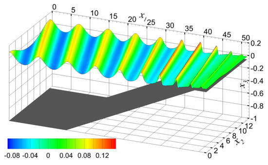 The three-dimensional, turbulent, free-surface flow developing in the surf zone over a constant-slope beach as a result of the interaction between the longshore current and the undertow, induced by spilling wave breaking oblique to the shoreline, is numerically simulated. The simulations are performed by implementing the large-wave simulation (LWS) method in a numerical solver of the three-dimensional Navier–Stokes equations. According to the LWS method, large velocity and free-surface elevation scales are fully resolved, while the effect of the corresponding subgrid scales is modeled by eddy-viscosity stresses. The model validation is based on the comparison between the present numerical results and existing experimental measurements for a case of incident regular waves propagating normal to the shoreline over a bed of constant slope 1/35. It is found that the LWS model adequately predicts the wave-breaking parameters—breaking height and depth—and the undertow vertical profiles in the surf zone. Then, two cases of oblique waves, with wave incidence angles of 20° and 30°, and all other parameters identical to those of the validation case, are considered. The numerical results include the gradual breaking process of the refracted waves, as well as the three-dimensional structure of the longshore current and the undertow in the surf zone. In the outer surf zone, the undertow has a larger velocity magnitude than the longshore current, while in the inner surf zone, the opposite occurs.