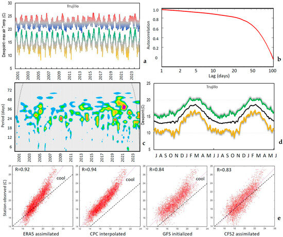 This study considers temperature gradients over recent decades near Trujillo, Peru, (8.15 S, 78.95 W) using high-resolution data assimilation. Statistical analyses describe a steep gradient from the cool foggy coast to the warm coastal plains below the Andes. A cross-coast transect is analyzed