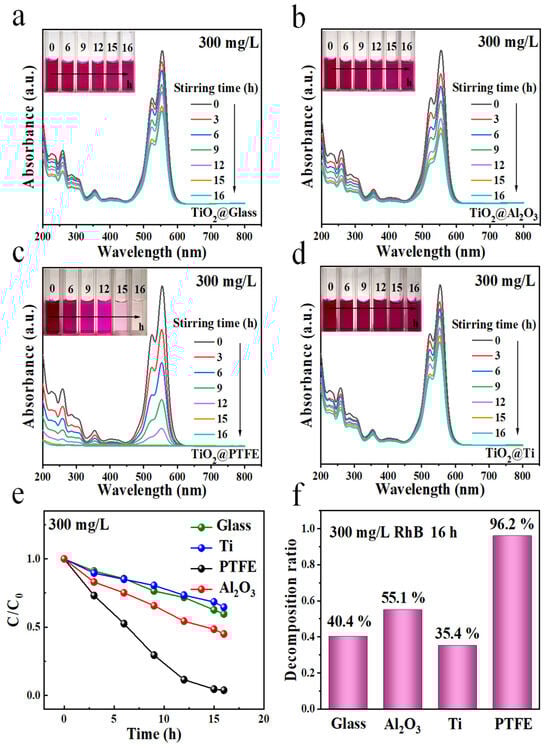 PTFE-Enhanced Tribocatalytic Degradation of High-Concentration (100–500 mg/L) Rhodamine B Solutions Using TiO2 Nanoparticles