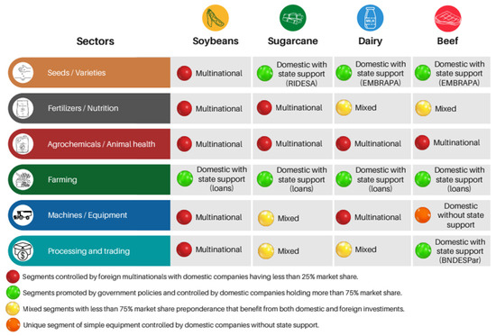 Industrial bio-inputs can improve commodity farming by replacing the use of agrochemicals. To assess the potential of agricultural bio-inputs to contribute to Brazil’s agro-industrial growth, we analyzed the market share held by domestic companies and the local market created by farmers who adopt bio-inputs. The results revealed that Brazilian companies accounted for 82.8% of the 221 companies with agricultural bio-inputs registered in Brazil by 2024. These domestic companies used technologies available to local investors and developed in collaboration with public innovation centers. Adoption levels among interviewed farmers ranged from 41.7% for biosolubilizers to 88.9% for bionematicides, revealing a large domestic market potential for bio-inputs in Brazil. We conclude that industrial agricultural bio-inputs represent an area of opportunity for Brazilian neo-industrialization based on local competitive advantages, low entry barriers, and domestic and foreign investments that can benefit from the local market for bio-inputs.