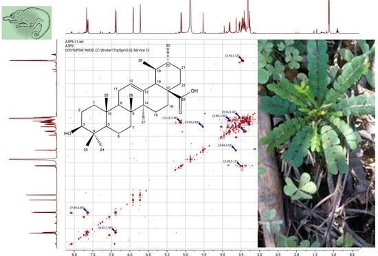 In recent years, Biophytum umbraculum Welw. (Oxalidaceae) has undergone several phytochemical and pharmacological investigations. Although its major phytochemical classes have been characterized, few isolated compounds have been reported. The previously detected phytoconstituents, along with the documented antioxidant and anti-inflammatory activities, both align with