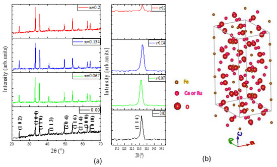α-Fe2−4xZ3xO3 (Z = Ce, Ru) nanoparticles were synthesized via a conventional solid-state reaction route. X-Ray diffraction analysis confirmed that all compositions crystallize in the single-phase hexagonal hematite (α-Fe2O3) structure, with no detectable secondary phases.