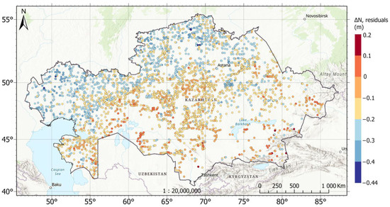 Accurate geoid determination is essential for height system unification and for converting Global Navigation Satellite System (GNSS) ellipsoidal heights to orthometric heights. This study demonstrates a national-scale workflow that integrates digitized Soviet-era gravimetric maps at 1:200,000 scale with modern satellite and ancillary datasets to compute a high-resolution gravimetric geoid for Kazakhstan. Legacy gravity maps were systematically digitized, harmonized, and quality-controlled, then integrated with a global geopotential model (XGM2019e_2159) for long-wavelength information and a digital elevation model (FABDEM) for terrain corrections. Geoid computation employed the Least-Squares Modification of Stokes’ Formula, with spectral testing used to select optimal parameters; external control and validation relied on an extensive set of GNSS observations and geometric levelling benchmarks from the national network. The resulting geoid surface captures the country’s full topographic range, from the Caspian Depression to the Tien Shan and Altai. After regression-based removal of residual tilts linked to distortions in the Baltic 1977 height system, we achieved a root-mean-square error of 0.066 m. The integrated use of 1:200,000 gravity maps and modern satellite-derived models yields accuracy improvements over widely used global solutions, establishing a consistent vertical reference for Kazakhstan and supporting datum modernization, GNSS-based heighting, infrastructure development, and environmental monitoring. These results show that digitized Soviet-era gravity maps, when fused with modern satellite datasets, can provide robust, high-accuracy geoid solutions.