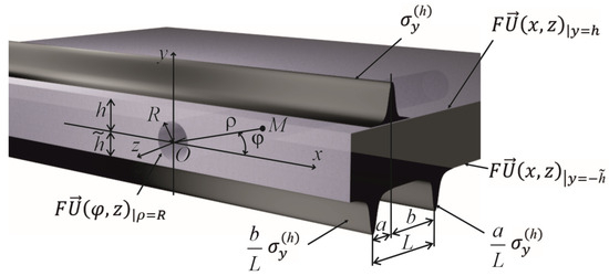 An analytical method is proposed for determining the stress-strain state in an elastic layer with a cylindrical cavity supported by linear continuous supports perpendicular to the cavity. The need for such a development is due to the fact that in aerospace and mechanical engineering, structural elements are often affected by loads and supports described by infinite functions. This complicates the calculation for spatial bodies with complex geometry and stress concentrators. The methodology is based on the generalized Fourier method within the spatial problem of elasticity theory. The model is considered as a layer with specified stresses at the outer boundaries, where the reactions of the supports are represented as applied loads. A combined approach is used to describe the geometry using a Cartesian coordinate system for the layer and a cylindrical coordinate system for the cavity. The key idea is to decompose the original problem into two simpler ones using the principle of superposition. Auxiliary problem: the stresses in a solid layer (without a cavity) are calculated to determine the stress fields at its nominal location. Main problem: a layer with a cavity is considered, on the surface of which the stresses calculated in the first step are acting but taken with the opposite sign. The complete solution is the sum of the solutions of these two problems. Each of them is reduced to an infinite system of linear algebraic equations, which is solved by the method of reduction. This approach makes it possible to calculate the stress-strain state at any point of the body with high accuracy. Numerical analysis confirmed the correctness of satisfying the boundary conditions and showed the dependence of stresses on the nature of the distributed loads. The cylindrical cavity acts as a stress concentrator, which leads to a local increase in stresses σx and σz at the upper and lower boundaries of the layer to values that exceed both the applied load by and the calculated resistance of concrete of class C25/30.