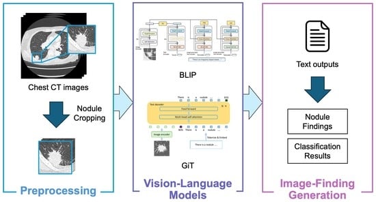 Preliminary Study on Image-Finding Generation and Classification of Lung Nodules in Chest CT Images Using Vision–Language Models