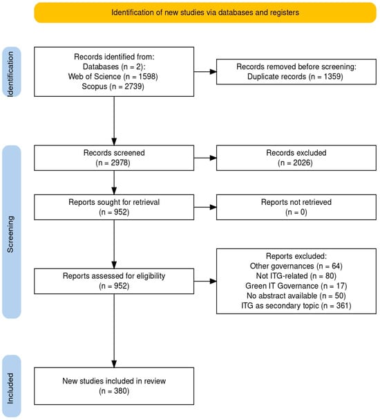 The study presents a systematic review of the state of the art on Information Technology (IT) governance research. Following the PRISMA 2020 protocol and drawing on Scopus and Web of Science, covering publications from 1999 to May 2025, 380 relevant articles were identified,