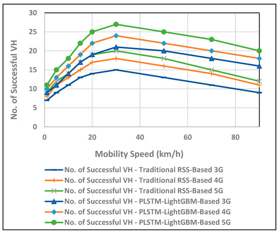 Present and future mobile networks combine wireless radio access technologies from multiple cellular network generations, all of which coexist. Seamless Vertical Handover (VH) decision-making is still a challenging issue in heterogeneous cellular networks due to the dynamic conditions of networks, different demands on QoS, and the latency of the handover process. Maintaining a very high-accuracy VH decision requires considering several network parameters. There is a trade-off between the gain of the VH accuracy and the corresponding latency in the computational complexity of the decision-making methods. This paper proposes a lightweight VH prediction DL strategy for 3G, 4G, and 5G networks based on the Light-Gradient Boosting Machine (LGBM) feature selection and Peephole Long Short-Term Memory (PLSTM) prediction model. For dense networks with large datasets and high-dimensional data, the combination of PLSTM and the fast feature selection LGBM, can reduce the computing complexity while preserving prediction accuracy and excellent performance levels. The proposed methods are evaluated using three case study scenarios using different feature selection thresholds. The performance evaluation is achieved by training and testing the proposed model, which shows an improvement using the proposed LGBM and PLSTM in terms of reducing the number of features by 64.28% and enhancing the VH accuracy prediction by 43.81% in Root Mean Squared Error (RMSE), and reducing the VH decision time of up to 51%. Furthermore, a network simulation using the proposed VH prediction algorithm shows an enhancement in overall network performance, with the number of successful VHs being 87%. Consequently, the data throughput is significantly enhanced.