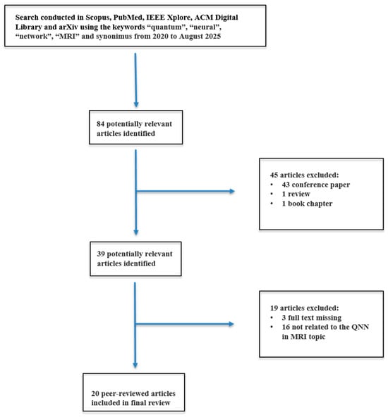 Background: Quantum Neural Networks (QNNs) combine quantum computing and artificial intelligence to provide powerful solutions for high-dimensional data analysis. In magnetic resonance imaging (MRI), they address the challenges of advanced imaging sequences and data complexity, enabling faster optimization, enhanced feature extraction, and real-time clinical applications. Methods: A literature review using Scopus, PubMed, IEEE Xplore, ACM Digital Library and arXiv identified 84 studies on QNNs in MRI. After filtering for peer-reviewed original research, 20 studies were analyzed. Key parameters such as datasets, architectures, hardware, tasks, and performance metrics were summarized to highlight trends and gaps. Results: The analysis identified datasets supporting tasks like tumor classification, segmentation, and disease prediction. Architectures included hybrid models (e.g., ResNet34 with quantum circuits) and novel approaches (e.g., Quantum Chebyshev Polynomials). Hardware ranged from high-performance GPUs to quantum-specific devices. Performance varied, with accuracy up to 99.5% in some configurations but lower results for complex or limited datasets. Conclusions: The findings provide the first glimpse into the potential of QNNs in MRI, demonstrating accuracy and specificity in diagnostic tasks and biomarker detection. However, challenges such as dataset variability, limited quantum hardware access, and reliance on simulators remain. Future research should focus on scalable quantum hardware, standardized datasets, and optimized architectures to support clinical applications and precision medicine.