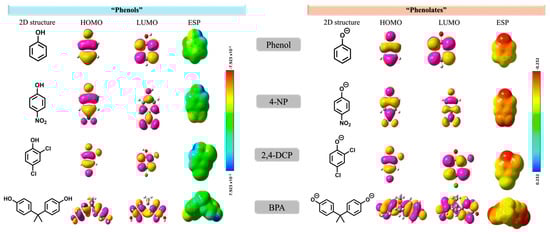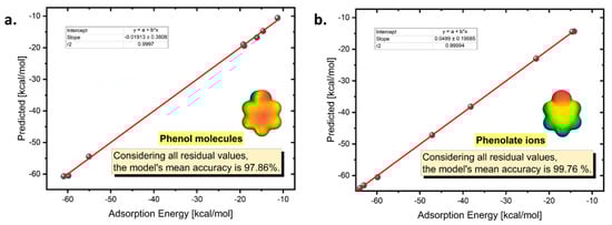 Water pollution from phenols remains a critical concern due to their persistence, toxicity, and industrial prevalence. Graphene oxide (GOx), with its functional groups and large surface area, offers strong adsorption potential. Using density functional theory (DFT), reduced density gradient (RDG), and quantitative structure–activity relationship (QSAR), we examined how protonation and substituents influence phenol adsorption. Deprotonated phenolates bind more strongly to GO than neutral species via electrostatics and H-bonding. Substituents alter affinity: halogens enhance it, bulky alkyls hinder it, and nitro groups show electron-withdrawing effects. Bisphenolate A displayed multidentate binding. QSAR models reproduced DFT energies with R2 > 0.99, enabling fast prediction. These results highlight how pH speciation and substituents govern adsorption on GO, guiding the design of efficient water treatment materials.
