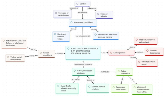 This study examines how the explanations about school violence are constructed in Chilean online newspapers after the country—which had the longest period of school closures—returned to in-person classes. During early 2022, several complaints of school violence surged compared to the lockdown years, prompting questions about how the media shaped public interpretations of this rise. Using a content analysis of three Chilean online newspapers (“SoyChile”, “ElMostrador”, and “LUN”), this study reconstructed the Subjective Theories (STs) conveyed in their coverage. All articles (n = 50) published during three strategic periods of the 2022 school year were analyzed to identify explicit and implicit theories about the causes, intervening conditions, and strategies for addressing school violence. The most prevalent ST framed school violence as a structural problem, appearing 27 times. This narrative portrays the phenomenon as both inevitable and beyond the control of key actors, such as caregivers, teachers, school leaders, authorities, and students, ultimately reducing perceived accountability and agency in prevention or intervention efforts. Media discourse tended to legitimize explanations that locate school violence outside the sphere of individual or institutional responsibility.