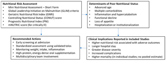 Background: Elderly individuals represent one of the populations most affected by COVID-19, exhibiting high vulnerability to malnutrition, sarcopenia, and poor clinical outcomes. The association between nutritional status and disease progression highlights the need for standardized assessment and targeted nutritional interventions. Methods: A systematic