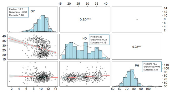 Wheat production, globally and in Kazakhstan, is significantly limited by heat stress and drought. The evaluation of agronomic traits related to yield under stress conditions is crucial for identifying yield-limiting factors and selecting drought-tolerant germplasm. The aim of this study was to evaluate