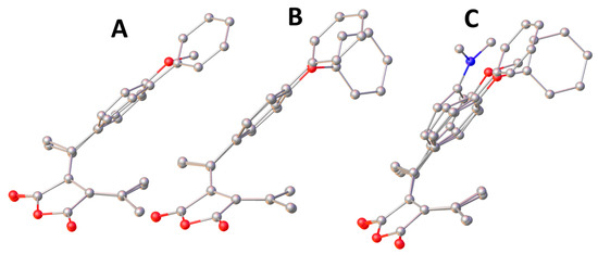 Fulgides are a class of organic compounds that exhibit photochromic behavior in both the solid state and in solution. These compounds have attracted considerable research interest due to their wide range of potential applications, including photochromic eyewear, smart windows, optical switches, data storage, and chemical and biological sensors. Here, we report the synthesis and crystal structures of fulgides bearing four different para-substituents on the phenyl moiety. All four molecules crystallize in space groups containing an inversion center. The distances between the two carbon atoms that would form the single C–C bond in the cyclized products fall within the range of 3.301–3.475 Å. The observed structural variations are attributed to intermolecular interactions based on Hirshfeld surface analysis. The fulgides exhibit photochromism, but they are not expected to display ferroelectric behavior due to their crystallization in centrosymmetric space groups.