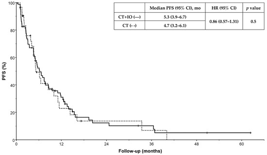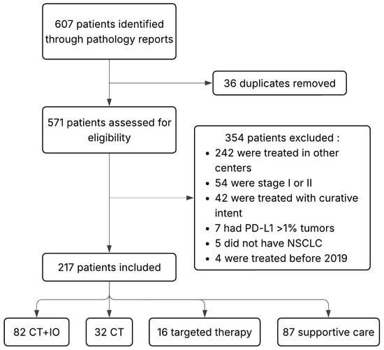 The standard first-line treatment for metastatic non-small cell lung cancer (NSCLC) without oncogenic alterations and programmed death-ligand 1 (PD-L1) expression < 1% is a combination of chemotherapy (CT) and immunotherapy (IO). However, real-world overall survival (OS) appears more modest than in clinical trials,