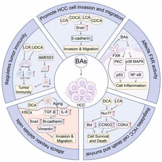 Bacterial metabolites play a dual role in hepatocellular carcinoma (HCC), exhibiting both tumor-promoting and tumor-suppressing activities dictated by their structural diversity. This review synthesizes recent advances in understanding how key microbial metabolites—such as bile acids, short-chain fatty acids, and polyamines—remodel the tumor immune