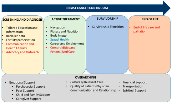 Black-identifying patients face many barriers to the receipt of equitable breast cancer care; however, little is currently known about the unique needs of this patient population, particularly in Canada. To address this gap, we identified and thematically grouped constructs from the published literature