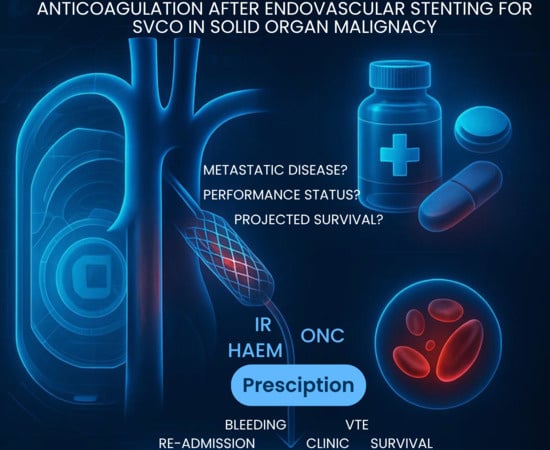 Background/Objectives: A knowledge gap persists regarding anticoagulation therapy after endovascular stent insertion for malignant superior vena cava obstruction (mSVCO). Guidelines are supported by retrospective studies with a radiological focus and lack specific drug recommendations. No studies to date have captured the multi-disciplinary nature