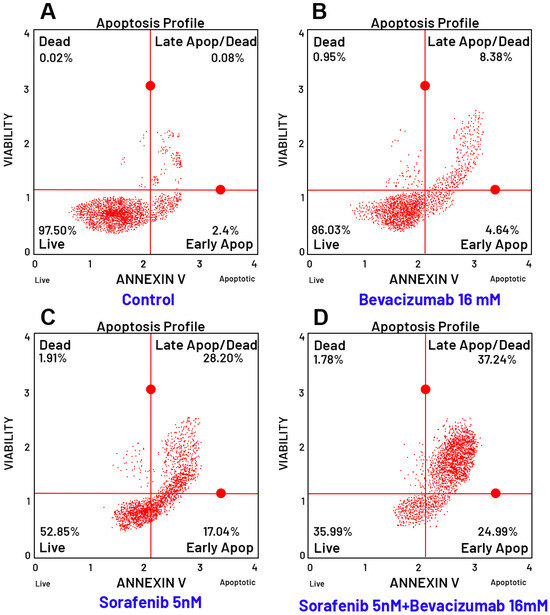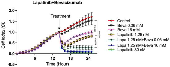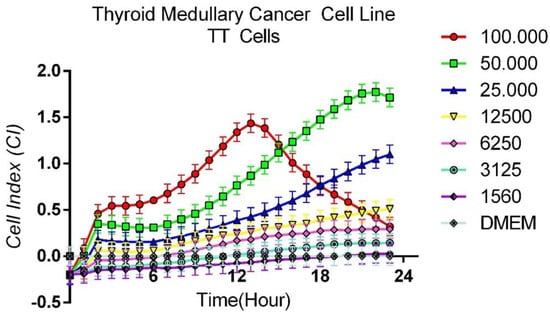 Background: Medullary thyroid carcinoma is a rare neuroendocrine tumor with limited therapeutic options, as current kinase inhibitors are often associated with significant toxicity and drug resistance. This study aimed to explore novel treatment strategies by testing targeted agents alone and in combination. Methods: Human medullary thyroid carcinoma TT cells with RET mutations were treated with Sorafenib, Lapatinib, and Bevacizumab. Cell proliferation was monitored in real time using the xCELLigence system, and apoptosis was assessed by flow cytometry. Results: Sorafenib and Lapatinib each showed strong, dose-dependent cytotoxic effects, with Lapatinib demonstrating the greatest potency. Bevacizumab alone exhibited minimal cytotoxic activity, but when combined with Sorafenib or Lapatinib it significantly enhanced their effects, even at concentrations that were only partially effective individually. The Lapatinib–Bevacizumab combination produced the most potent inhibition of cell viability, comparable to high-dose monotherapy. Conclusions: These findings suggest that combining kinase inhibitors with Bevacizumab may enhance antitumor activity, allow the use of lower drug doses, and overcome resistance, representing a promising therapeutic strategy for medullary thyroid carcinoma that warrants further investigation in clinical settings.