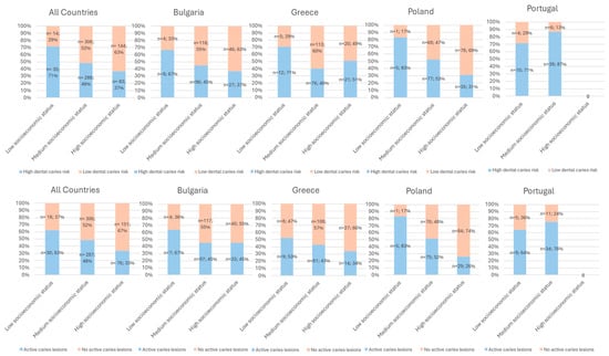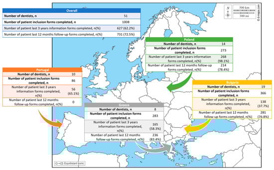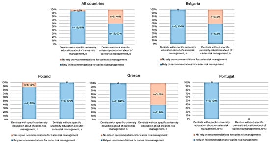 Background: This observational ambispective longitudinal international study explored dentists’ practices and patient records concerning dental caries risk management across four European countries (Bulgaria, Greece, Poland and Portugal). Methods: Dentist volunteers recruited patients needing caries risk management, either through preventive or curative measures, from