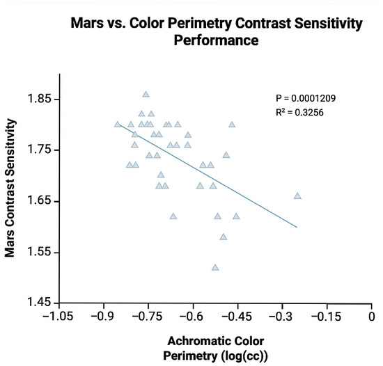 Background/Objectives: Type 2 diabetes (T2DM) is a leading cause of vision loss. Functional measurements (color vision and contrast sensitivity) are sensitive to early changes in eyes even before retinopathy is present. This study evaluates a novel color perimetry device as an indicator