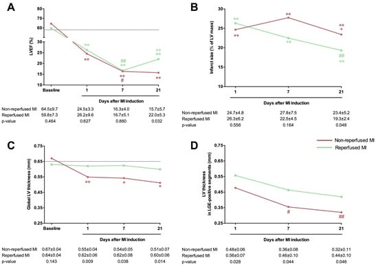 Background/Objectives: Unlike post-mortem histopathology, cardiovascular magnetic resonance (CMR) and positron emission tomography (PET) enable longitudinal assessment of structural, functional, and metabolic alterations in preclinical myocardial infarction models. This study aims to describe the temporal evolution of infarct size and systolic function by