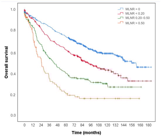 Background/Objectives: Accurate lymph node (LN) evaluation is crucial to predicting outcomes in colorectal cancer (CRC). Higher lymph node counts (LNCs) improve prognosis, whereas increased metastatic involvement worsens survival. This study aimed to identify factors associated with higher LNCs and evaluate the prognostic value of the metastatic lymph node ratio (MLNR). Methods: A retrospective analysis was performed on 989 CRC resections. Patients were stratified into four MLNR categories—MLNR0 (no metastasis), MLNR1 (<0.20), MLNR2 (0.20–0.50), and MLNR3 (>0.50)—and into two LNC groups—lower LNC (<12) and higher LNC (≥12). Results: The median LN count was 14 (range: 5–198). Lower LNCs occurred in 346 cases (35.0%), predominantly in the left colon. Higher LNCs were significantly associated with younger age (p < 0.001), larger tumor size (p < 0.001), higher pN stage (p < 0.001), right-sided location (p = 0.003), Crohn’s-like lymphocytic response (p = 0.006), and the absence of satellite nodules (p = 0.016). There were 86 pT4 and 178 pN2 tumors. Overall survival was 50.6%, with the 1-, 3-, and 5-year rates being 0.891, 0.721, and 0.612, respectively. Survival was higher in patients with higher LNCs (53.5% vs. 45.1%, p < 0.001). Survival rates by MLNR were 61.2% (MLNR0), 47.7% (MLNR1), 34.0% (MLNR2), and 26.4% (MLNR3). Mortality strongly correlated with MLNR (p < 0.001), and life expectancy decreased as MLNR increased (p < 0.01). Conclusions: MLNR provides superior prognostic information compared to pN status, even in patients with suboptimal lymph node retrieval (LNC < 12). As an independent survival predictor, MLNR may be integrated into staging systems and guide therapeutic strategies, highlighting its clinical utility in both standard and “gray zone” CRC cases.