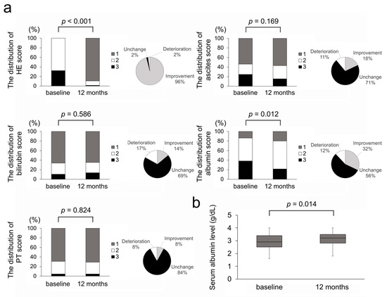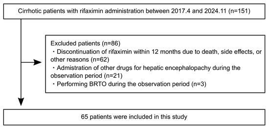 Objectives: Rifaximin is a non-absorbable antibiotic that has an efficacy for hepatic encephalopathy (HE). We previously demonstrated that rifaximin improved liver functional reserve, but this was a single-center study with a limited number of cases, and there were few cases of long-term use. Here, we conducted a multicenter study to evaluate the efficacy of long-term rifaximin administration on the liver functional reserve. Methods: A multicenter retrospective study was conducted on cirrhotic patients who received rifaximin for more than 12 months. We evaluated the efficacy of long-term rifaximin administration on the liver functional reserve. Results: A total of 65 cirrhotic patients were enrolled. Administration of rifaximin for 12 months significantly improved the Child–Pugh score (CPS) and albumin–bilirubin (ALBI) score. Regarding the parameters of the CPS, albumin scores significantly improved in addition to HE scores at 12 months. Univariate and multivariate analysis revealed that high C-reactive protein (CRP) levels (>0.69 mg/dL) at baseline were the predictive factor for improvement in the liver functional reserve. Conclusions: This study suggests that long-term rifaximin administration may improve the liver functional reserve in cirrhotic patients through improvement in albumin levels. CRP levels predict improvement in the liver functional reserve.